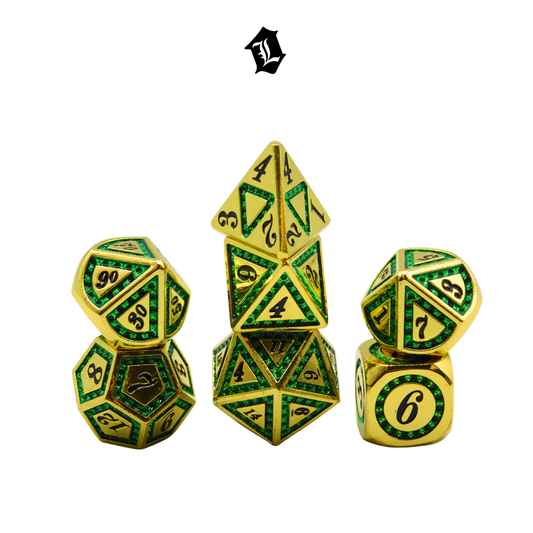 [ENCHANTED EMERALD] 7PC SOLID METAL DICE SET