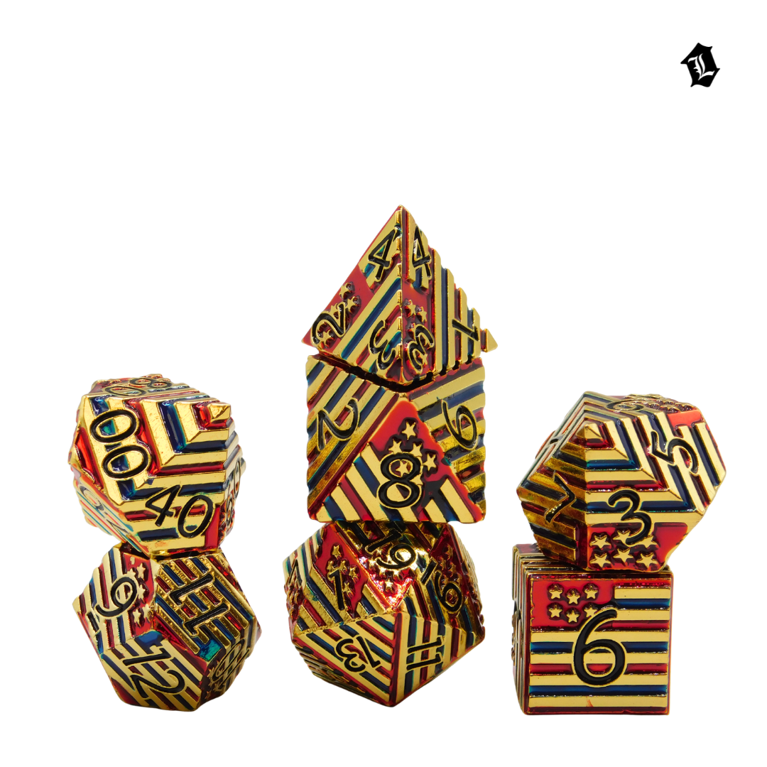 Each die features a satisfying heft and precision-cut edges, delivering that unmistakable metallic clink at the table. Whether you're commanding armies in Dungeons & Dragons, navigating intricate RPG campaigns, or settling disputes with style, these durable dice bring gravitas to every roll.