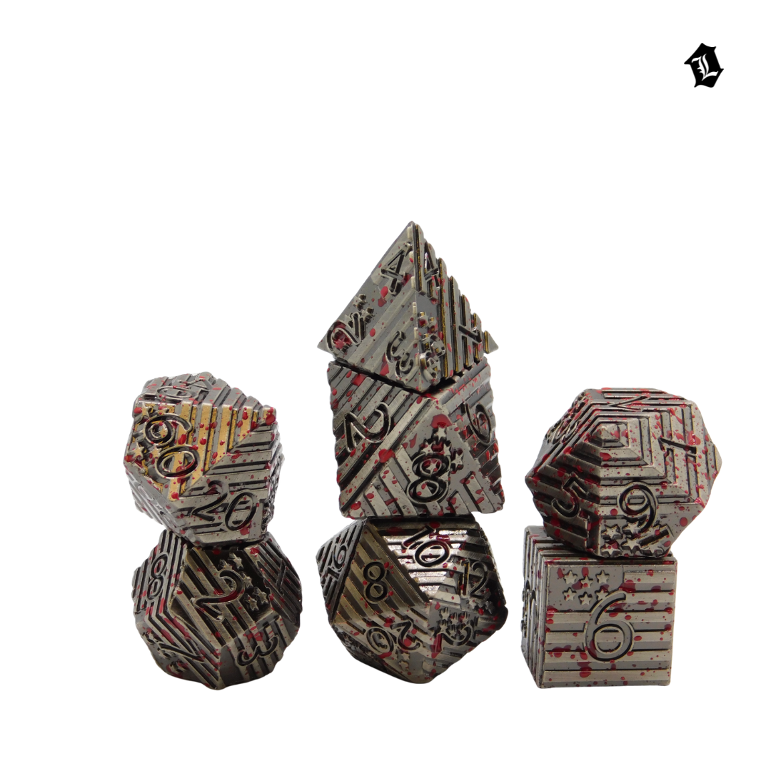 Each die features a satisfying heft and precision-cut edges, delivering that unmistakable metallic clink at the table. Whether you're commanding armies in Dungeons & Dragons, navigating intricate RPG campaigns, or settling disputes with style, these durable dice bring gravitas to every roll.